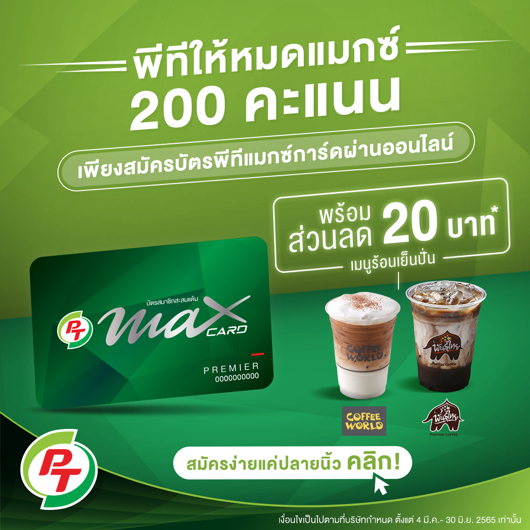 สมาชิก PT Max Card รับสิทธิพิเศษ ร้านกาแฟพันธุ์ไทย