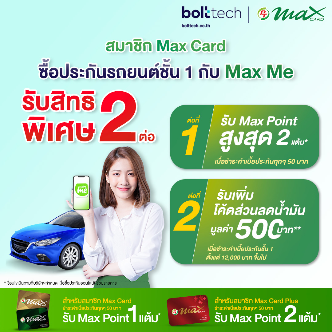 ซื้อประกันรถยนต์ชั้น 1 ผ่าน Max Me รับสิทธิพิเศษ 2 ต่อ