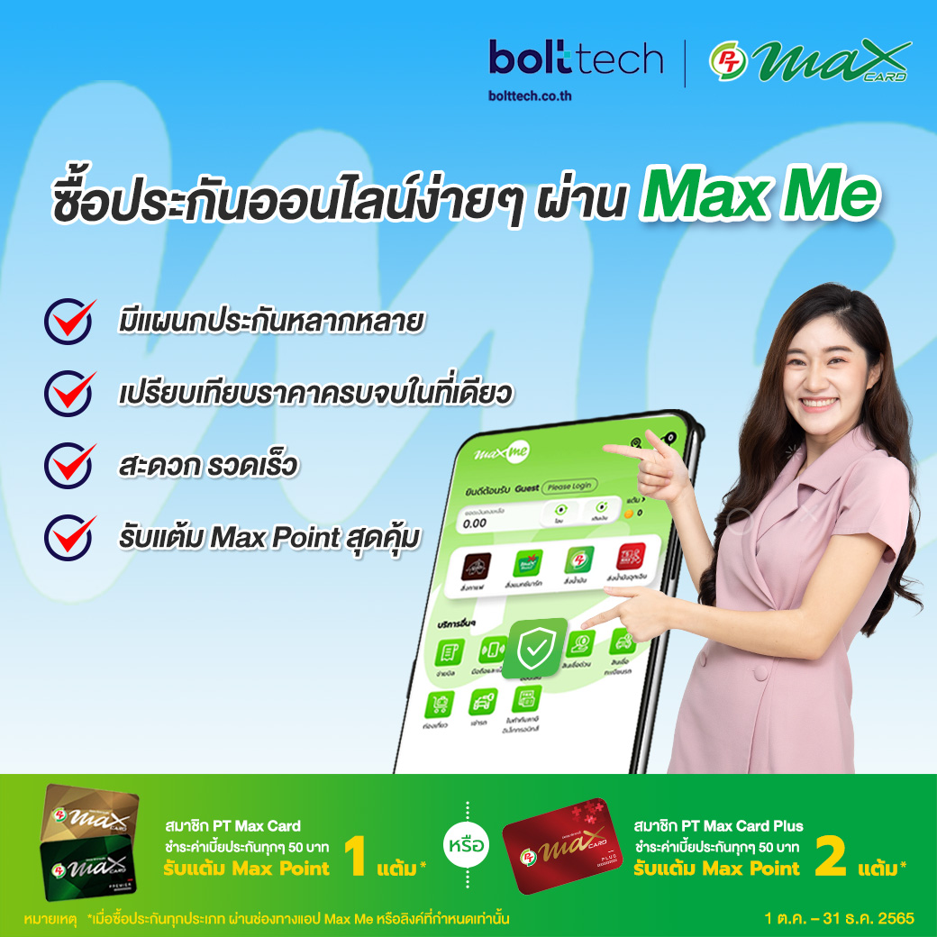 ซื้อประกันทุกประเภท ผ่าน Max Me 50 บาท รับ Max Point 1 แต้ม