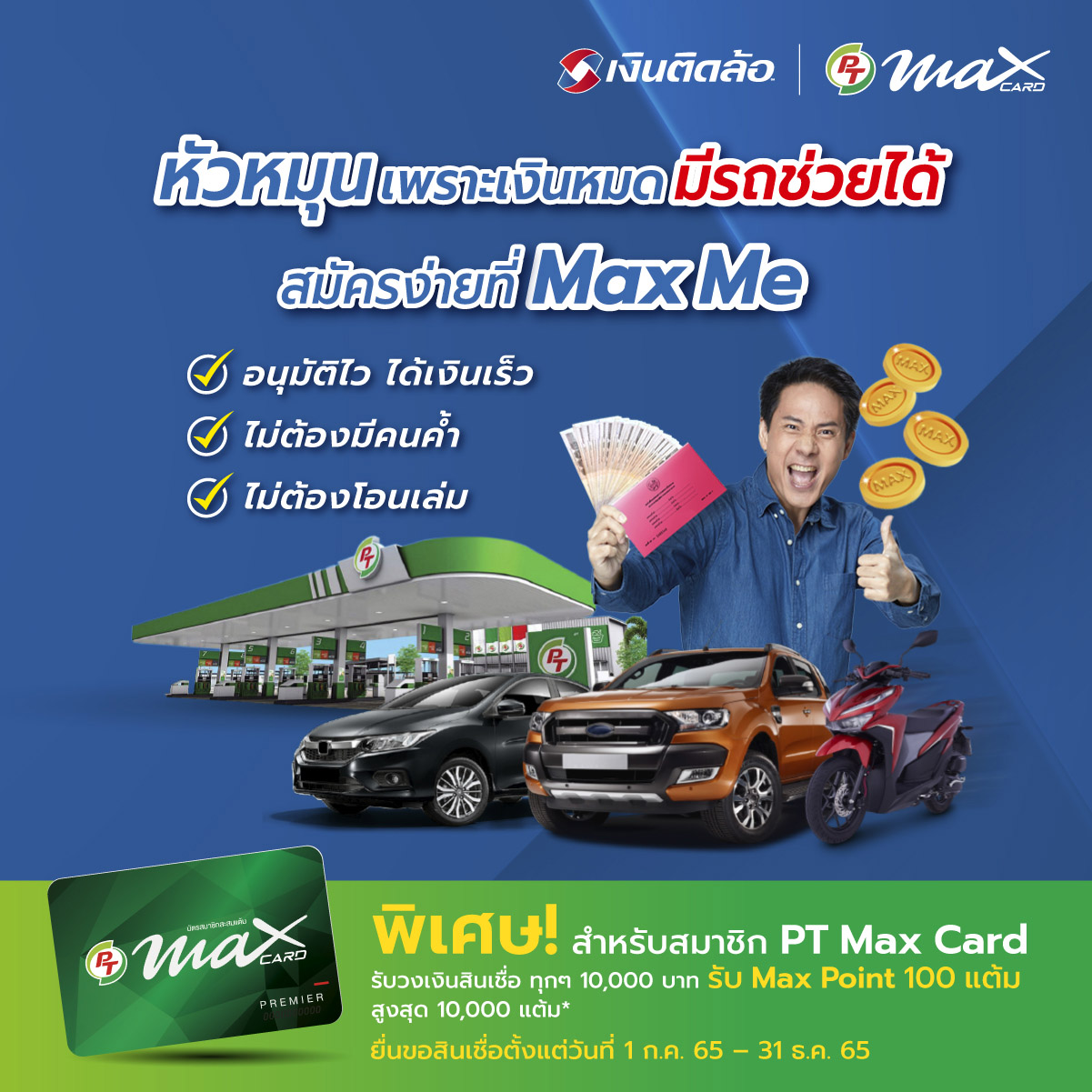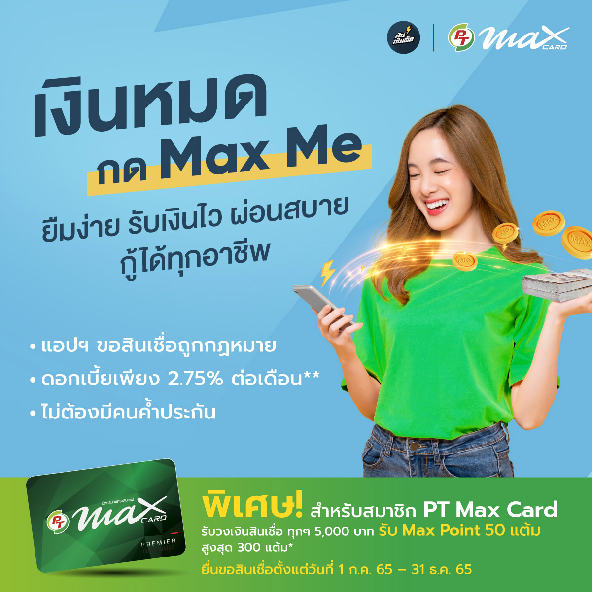 วงเงินสินเชื่อที่ได้รับ 10,000 บาท รับ Max Point 100 แต้ม